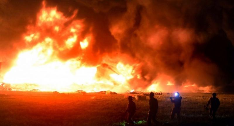 Video taken in the aftermath showed screaming people fleeing the scene as an enormous fire lit up the night sky.