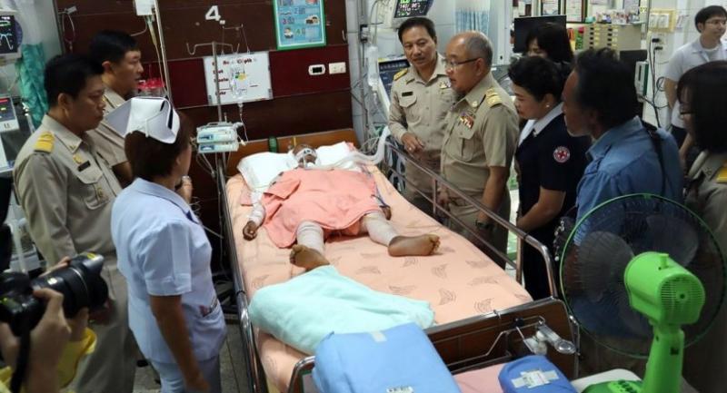 The boy had emergency surgery on Sunday night for in-depth assessment of the deep wounds he suffered all over his body, including his face, arms and legs, said paediatrician Dr Natthawan Thepnarong.