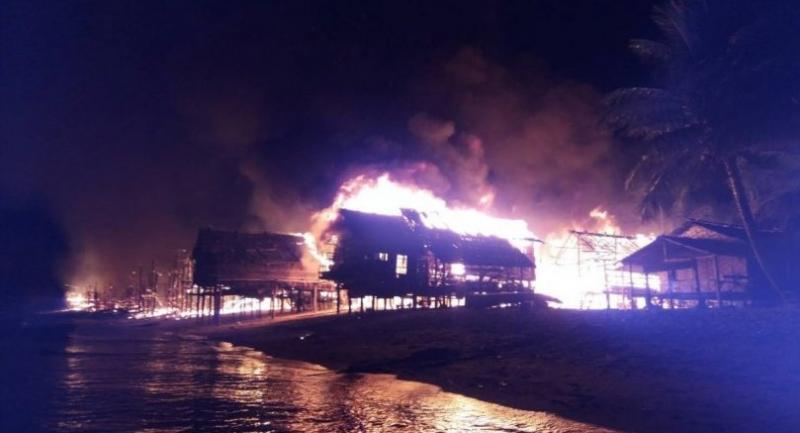 The governnor said a family was repairing a boat engine under a house when it exploded, causing a fire that quickly spread to other wooden houses nearby fanned by a strong wind.