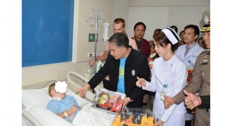 Sunthorn gave updates on the boy’s condition to Krabi governor Kittibodee Prawit, Tourist Police Bureau 3 commander Pol Maj General Angkul Klaikleung and Krabi police chief Pol Maj General Sakchai Limcharoen, who together visited the boy and gave him gifts to lift his spirits.