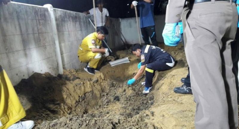 Thung Khru superintendent Pol Col Surawet Kansiriwattanasirikul said on Monday that Issada’s relatives had noticed a suspicious pile of sand in the side yard the day before and dug down 30 centimetres, where they came across a human hand.
