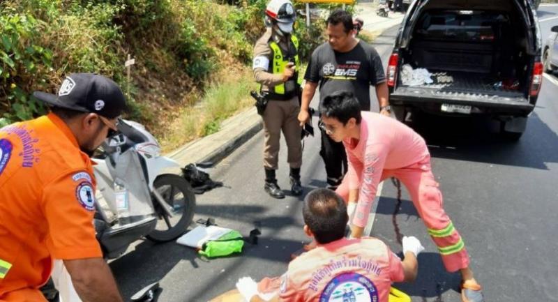 The truck driver Mongkon Sawenglab, who was waiting for police at the scene, said he was heading towards Karon from Chalong Circle.