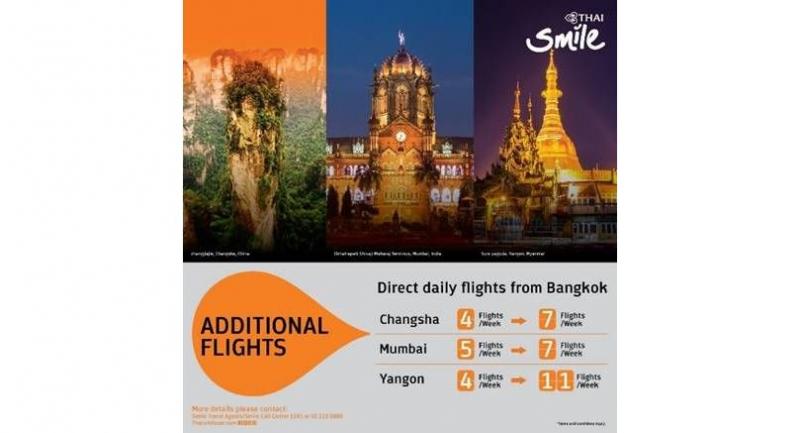THAI Smile Airways has increased its flights for three international routes to facilitate travellers.