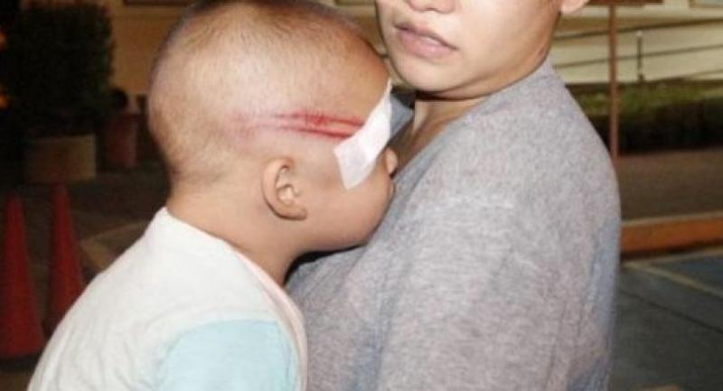 He struck the toddler on the head, knocking him unconscious and opening a 10-centimetre wound that took three stitches to close.