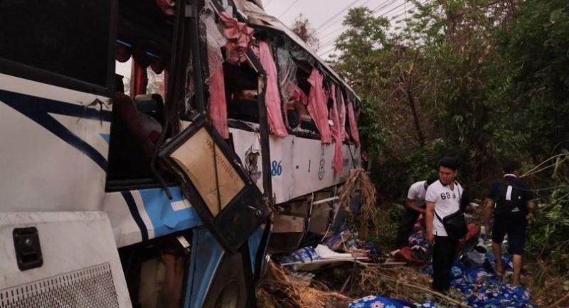 Police say the Bangkok-That Phanom bus - carrying 44 people - was reportedly running at high speed heading to Bangkok when it reached Noen Sung area in the rain.