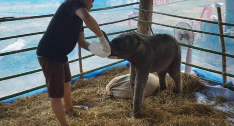 Wildlife officials moved the young elephant, named Chabakaew, from Bueng Kan's Bungkla district and it reached the elephant hospital in Surin on Thursday morning.
