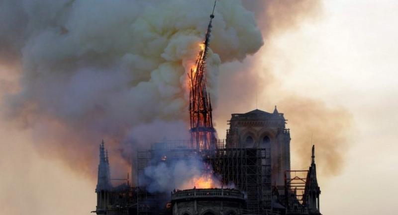 Gregoire said the spire "collapsed inwards" and that workers were scrambling "to save all the artworks that can be saved."