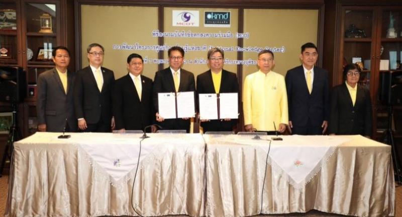 MCOT president Kematat Paladesh and OKMD director Atipad Bumroong on Tuesday signed a memorandum of understanding on the development of the NKC.