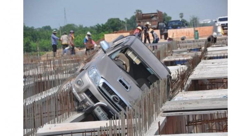 On May 5, a 60-year-old man sustained slight injuries when driving his Toyota pickup on the unfinished Bang Pa In-Nakhon Ratchasima motorway and fell into a six-metre hole in Ban Kud Noi, Sikieo district.