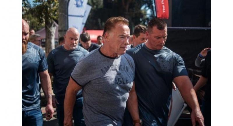 The bodybuilder and former politician was chatting with fans at the Sandton Convention Centre in Johannesburg when a man took a flying leap and kicked him high in the back.