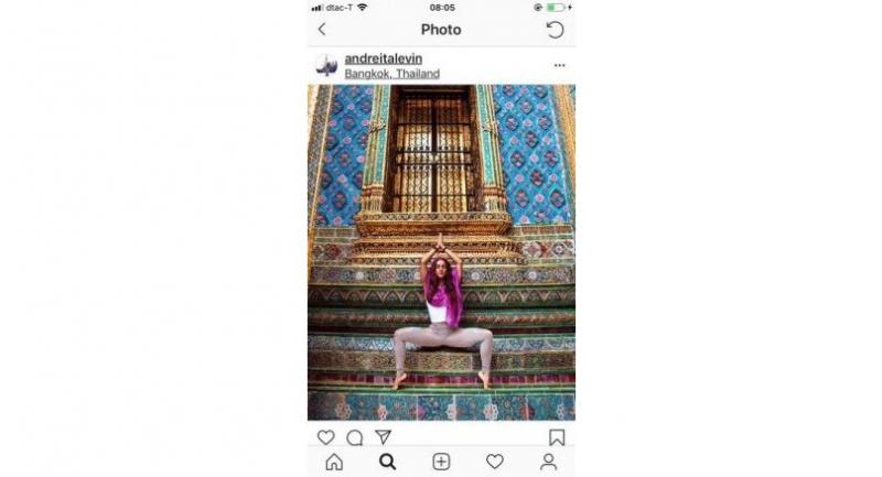 Andreita Levin's pictures on Instagram show that she visited Prasat Pra Thepbidorn or Royal Pantheon in Bangkok, Rong Sue Ten temple or Blue temple in the Northern province of Chiang Rai and Sukhothai Historical Park in Sukothai.
