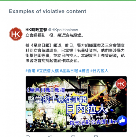 “We are disclosing a significant state-backed information operation focused on the situation in Hong Kong, specifically the protest movement and their calls for political change,” Twitter announced on its blog on Tuesday.