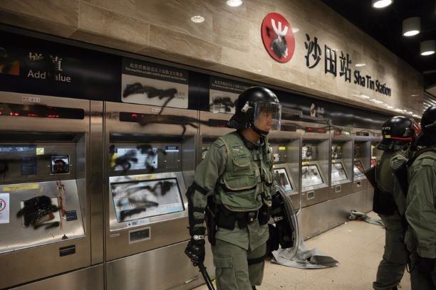 Some radical protestors are recklessly damaging the facilities with hard objects, spraying water on the floor and throwing objects at Sha Tin MTR Station, according to police.