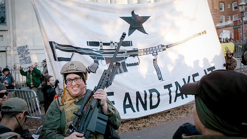 Others carrying weapons crowded in the streets outside the Capitol complex. In some areas, the sea of gun-toting, camouflage-wearing humanity was so thick people could not move.