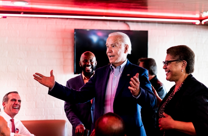 "It's still early, but things are looking awful, awful good," Biden told supporters in Los Angeles on Tuesday night. "For those who have been knocked down, counted out, left behind, this is your campaign."
