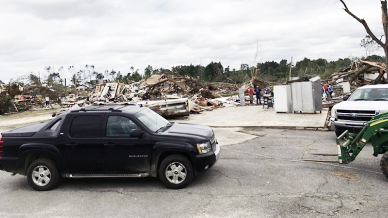 The tornado, which was on the ground for an hour and 17 minutes as it plowed down vegetation and demolished structures between Mississippi's Jefferson Davis and Clarke counties, caused EF4 damage in the community of Moss. The majority of damage elsewhere was found to be in the EF2 to EF3 range, commensurate with winds between 111 and 165 mph.
