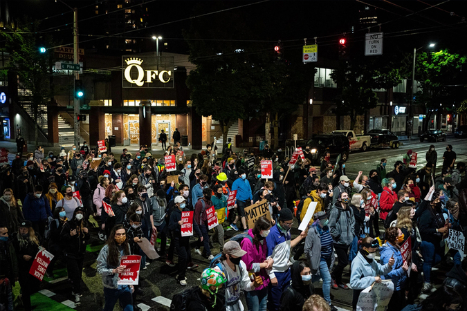 On June 1, protesters marched from downtown Seattle up to Capitol Hill. When they found their route blocked by barricades set up around the neighborhood's police precinct, the crowd swelled and police eventually declared a riot.