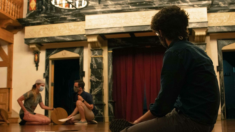The newness extends to the mind-boggling matrix of decisions involved in interacting physically on a stage. After two weeks of Zoom, the actors gathered together for the first time on June 23 in Blackfriars Playhouse, the 300-seat theater modeled on Shakespeare's own. But what does socially distanced Shakespeare look like? In a mask, how does an actor read expressions? What's the protocol when a stage direction calls for a kiss? And, even if physical trust has been established between actors, will an audience be comfortable bearing witness to them in close contact?