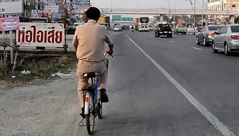 The chief of Samet subdistrict was impressed by his dedication and bought him a new bike.