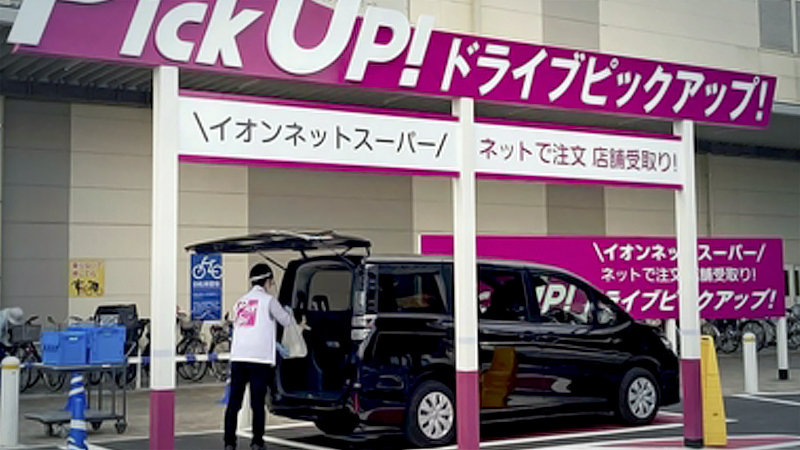 The Aeon Higashi-Kurume store in Tokyo started the service in full on Thursday. Consumers choose from about 35,000 items including food and daily necessities, order online and pay by credit card. They then go to a special location in the store’s parking lot at the designated time to pick up their goods via drive-through.