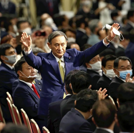 Suga, 71, scored a resounding victory with 377 votes in the first round of voting. LDP Policy Research Council Chairman Fumio Kishida, 63, received 89 votes, and former LDP Secretary General Shigeru Ishiba, 63, gained 68 votes.