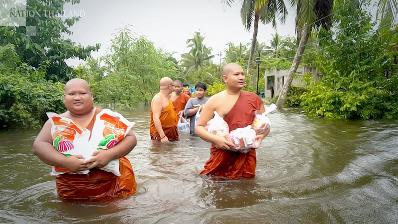On Thursday, pictures of monks helping victims in the disaster-hit areas of the southern province were published on the Internet.