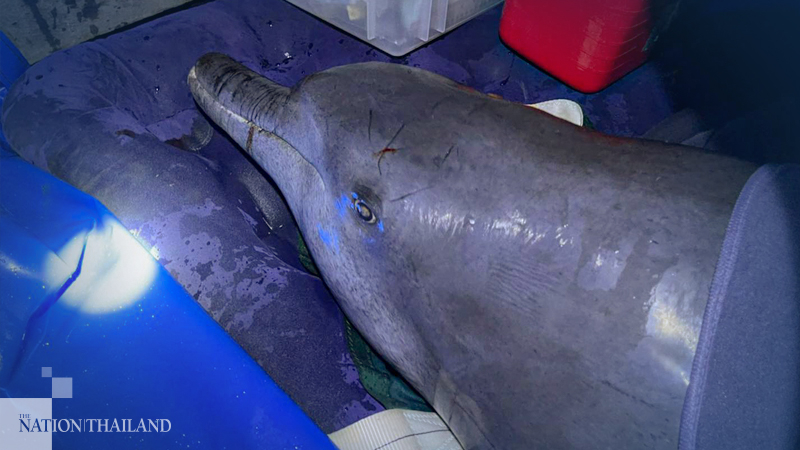 The dolphin has been taken to the Coastal Fisheries Research and Development Centre in Tha Sa-An subdistrict of Chachoengsao province for a health examination.