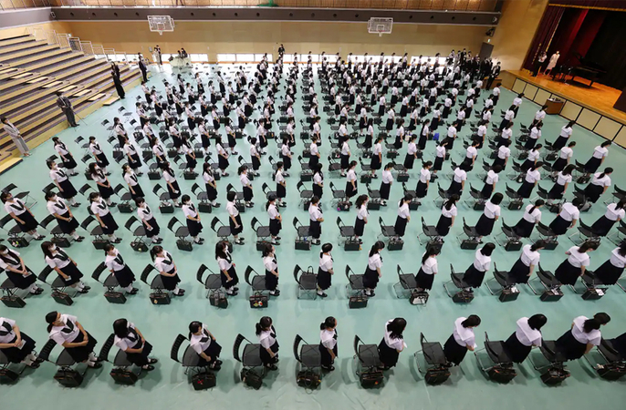 Miyuki Nozu, a 32-year-old woman now working with refugees, went to a private school that demanded students with brown or curly hair carry certification with them at all times. Eyebrows were regularly checked to make sure students had not plucked them, while socks had to be white and folded three times.