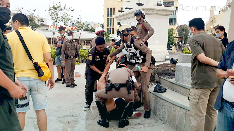 A Ruamkatanyu Foundation volunteer said the man parked his pickup truck on the traffic island near the monument, poured gasoline on the monument's base and started a fire.