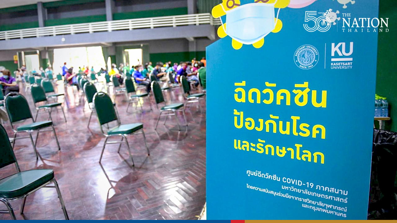 Bangkok Metropolitan Administration permanent secretary Silapasuay Raweesangsoon arrived at the university to oversee its operation to vaccinate 1,000 staff aged between 55 and 60 in the morning.