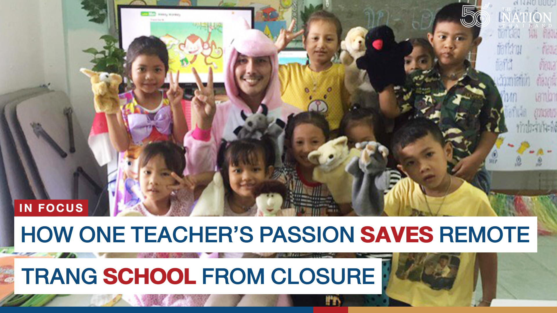 Among the teachers who fought to keep the school running is Pathomchai Woratanti, 26, whose style and passion for teaching has upped the number of students from 21 to 80. Here we peek in on one of his classes to witness the magic.