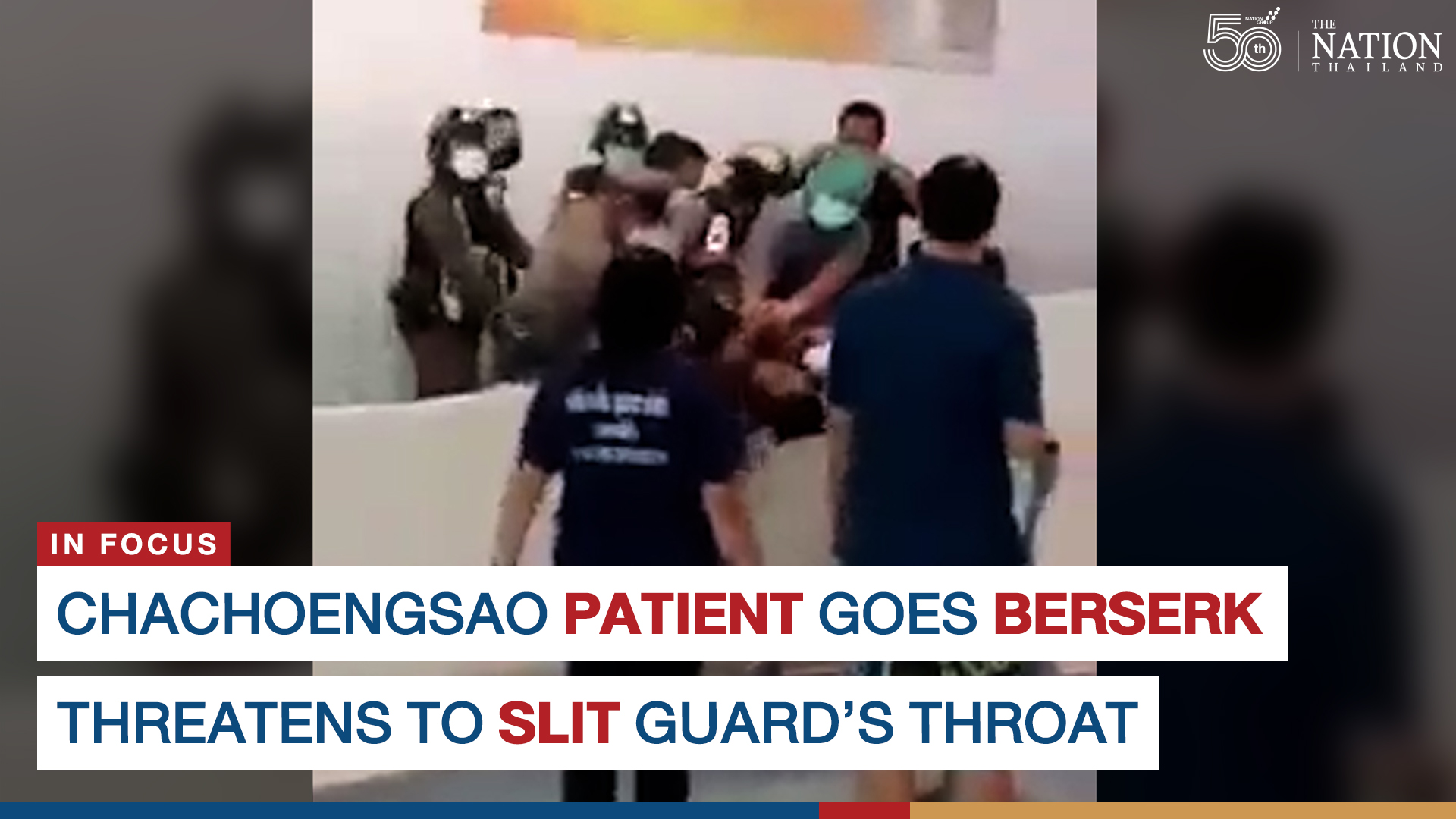 Witness Panfa Suwankul said she arrived at the hospital to find the patient fighting with staff at the hospital’s emergency room entrance. When a security guard tried to intervene, the patient threatened him with a utility cutter, forcing the guard to retreat.