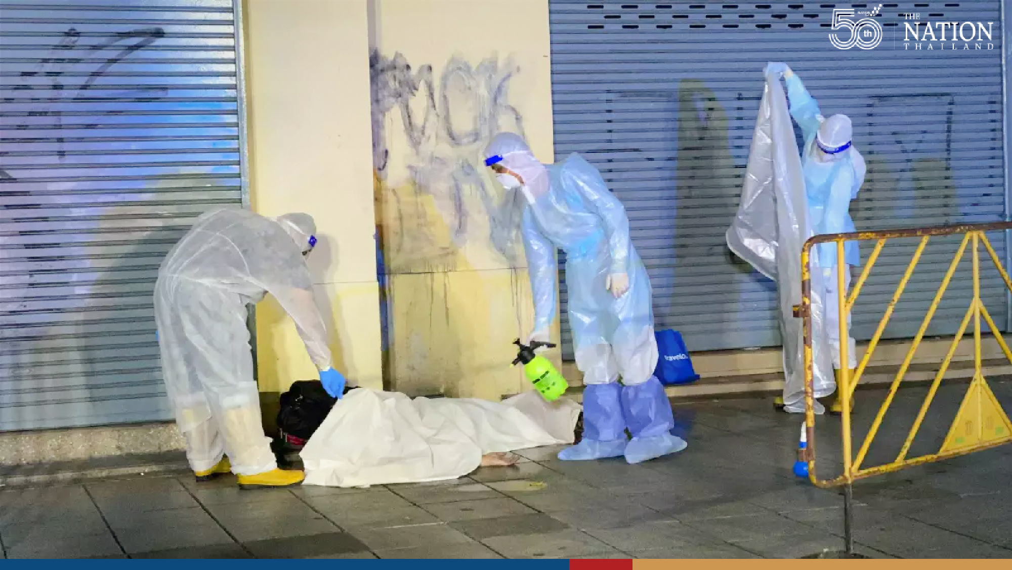 After collecting the man’s body, officials were immediately called to pick up another body of a man who was found dead at 6pm on the sidewalk on Ratchadamnoen Klang Avenue. Suspected of contracting Covid-19, his body was also left there until specialised staff in PPE outfits arrived at 10.30pm.
