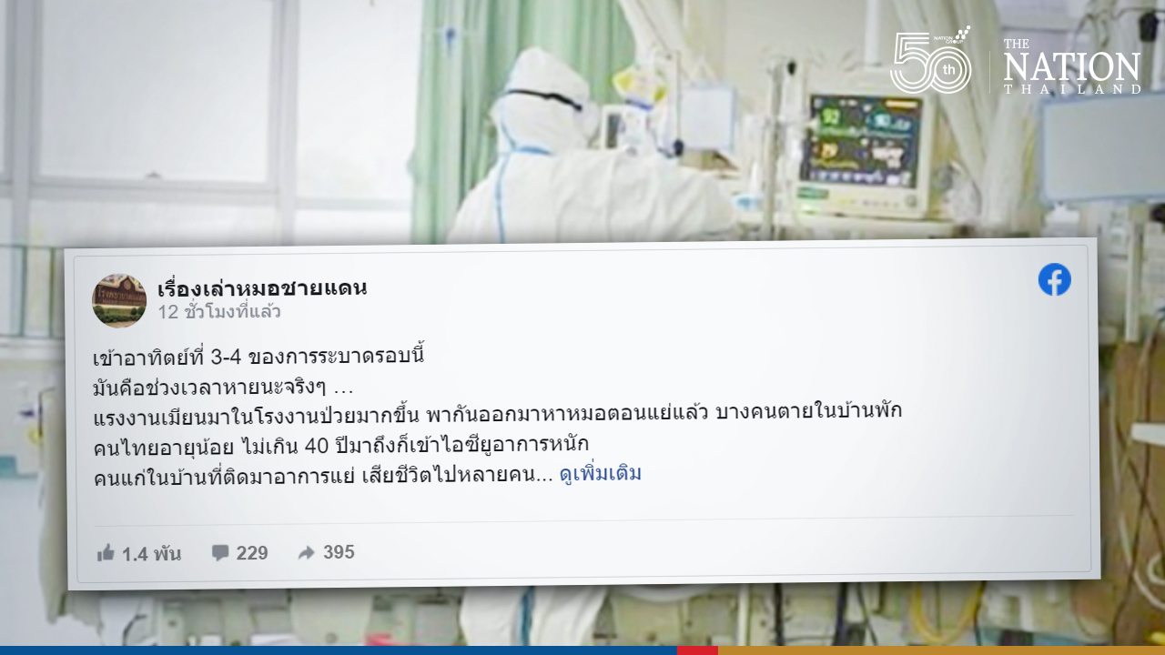 Thais aged below 40 need ICU beds, while some seniors die at home. This is a tragedy nobody wants to happen,” she wrote in the “Story of Border Doctors” Facebook page on Tuesday.