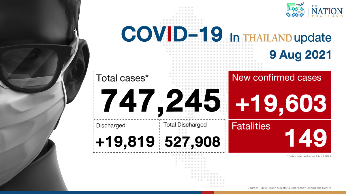 Thailand recorded 19,603 Covid-19 cases and 149 deaths on Monday