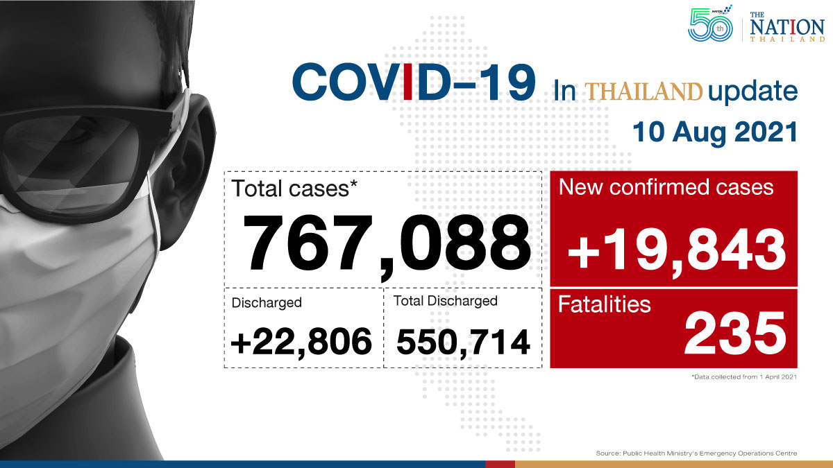 Separately, another 350,389 people were given their first Covid-19 shot in the last 24 hours, 104,484 their second shot, and 46,457 their third shot, bringing the total number of Covid-19 vaccine doses administered in Thailand to 21,171,110.