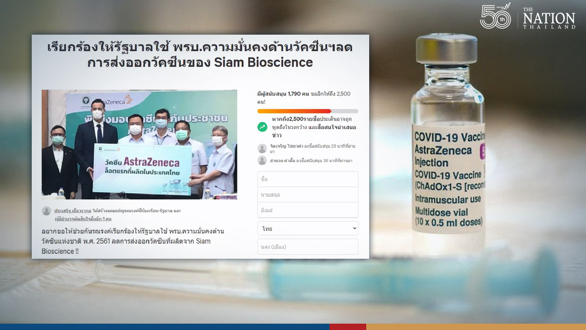 Prasert said the premier can under the law limit or suspend the export of AstraZeneca vaccines produced locally by Siam BioScience.