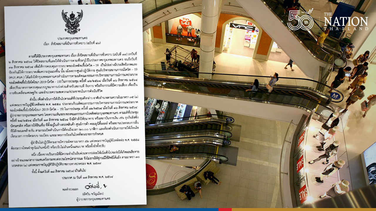 The lockdown closure restriction has been lifted for banks, credit card leasing businesses and other financial services located in the capital’s shopping malls, shopping centres, community malls and similar establishments. However, all operators will have to comply with disease controls or face up to one-year imprisonment and/or a fine of up to 100,000 baht.