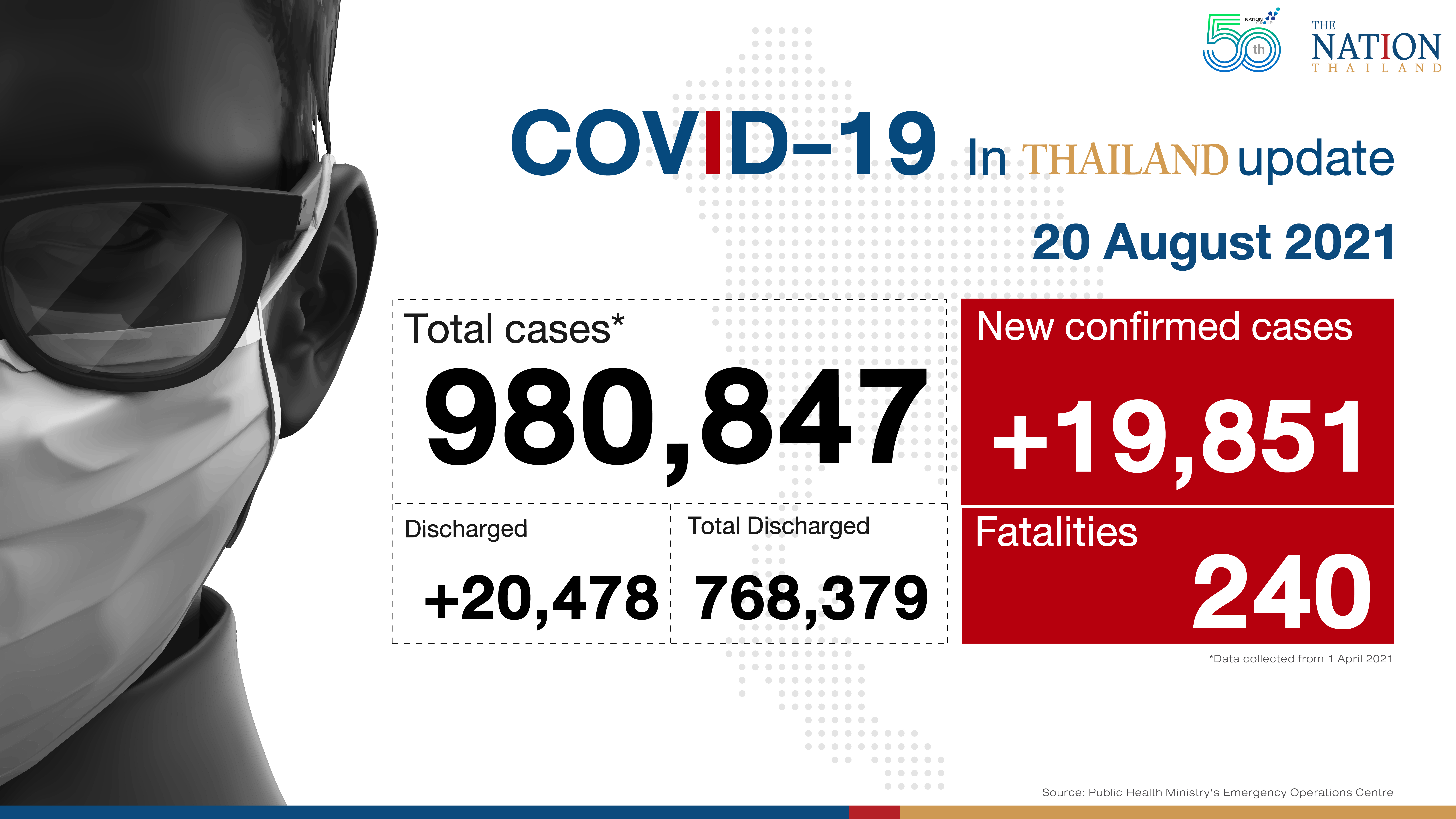Ministry of Public Health reported on Friday (August 20) morning that in the past 24 hours there are 19,851 new patients who tested positive for Covid-19, 325 of whom have been found in prisons.