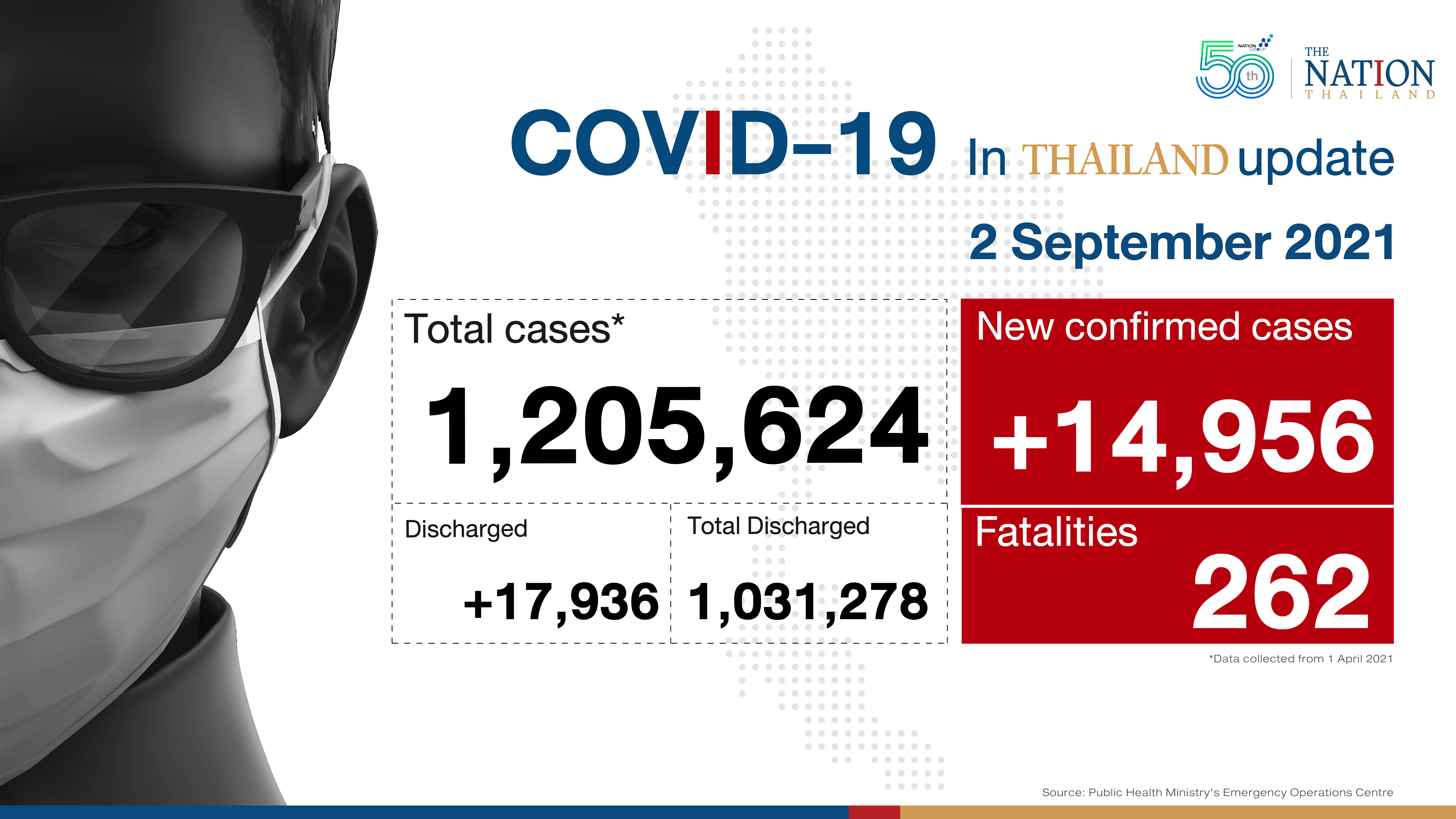 Ministry of Public Health reported on Thursday (September 2) morning that in the past 24 hours there are 14,956 new patients who tested positive for Covid-19, 356 of whom have been found in prisons.