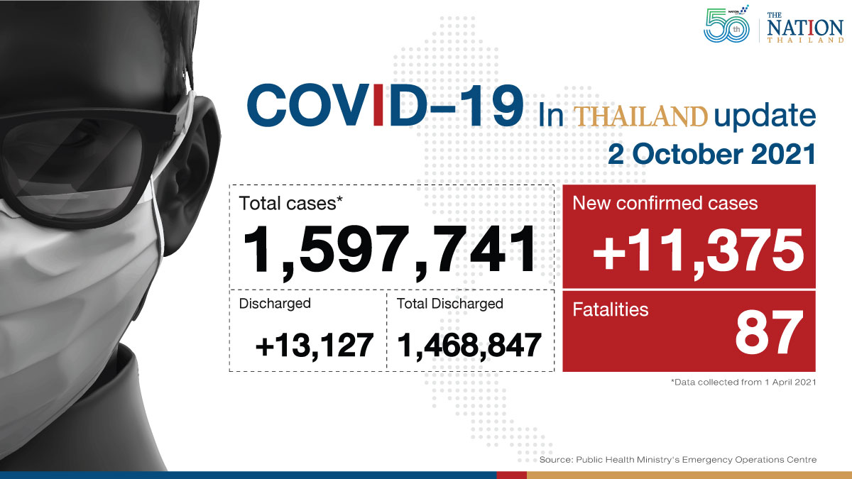 Thailand recorded 11,375 Covid-19 cases and 87 deaths on Saturday.