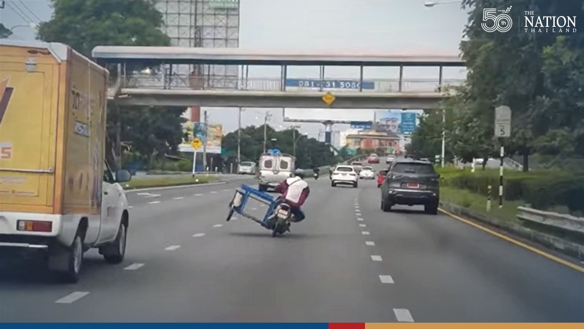 Praphan Udomrak, 34, was caught on a car’s dashcam doing what looked like a wheelie from Nakhon In Road to the Rama V roundabout at about 9am on Friday. Police tracked Roi Et-native to his home in Bangkok’s Chatuchak district.