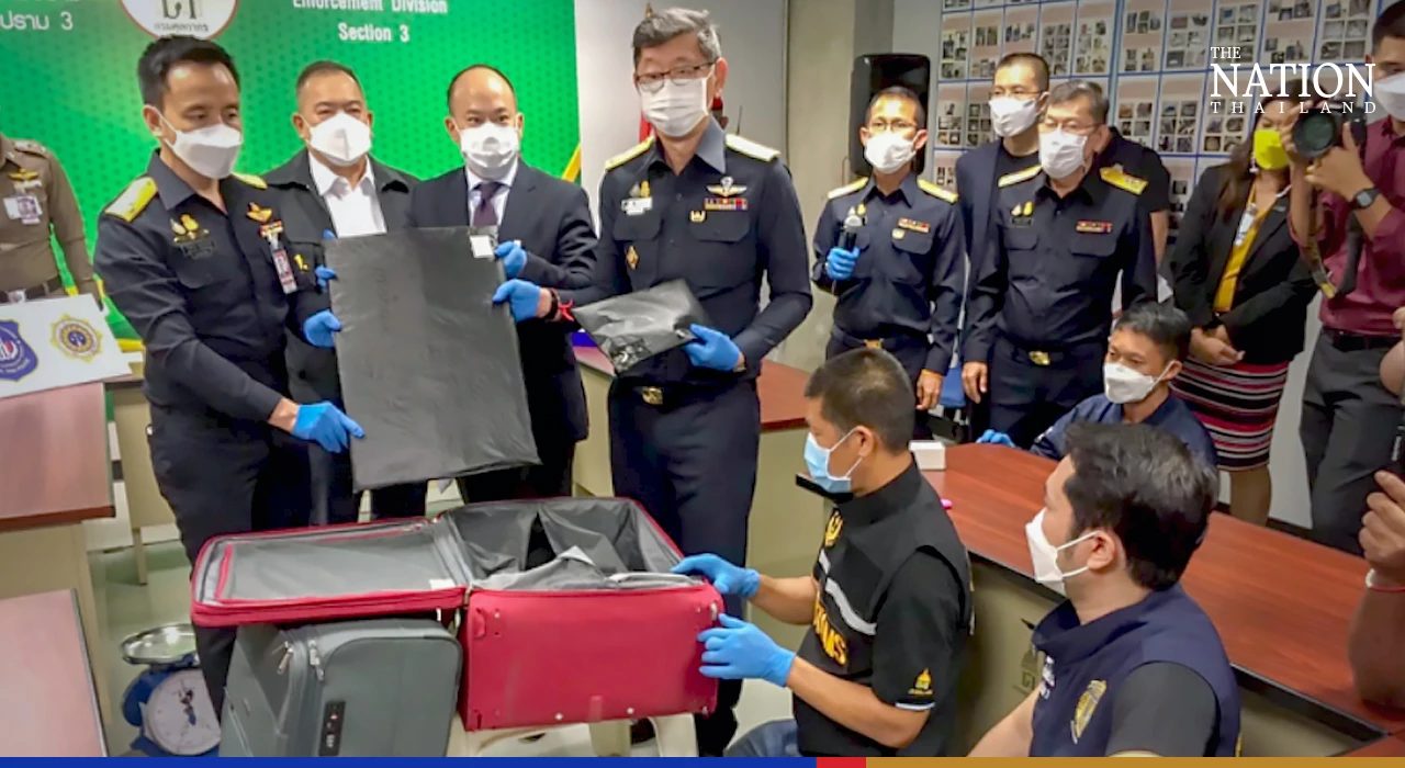 “The first batch of cocaine – 9kg – was smuggled in black plastic bags discovered in secret compartments of three suitcases. They belonged to a Brazilian man and a woman travelling from Curitiba. The two were caught at the airport X-ray machine at around 7am on Monday,” Customs Department director-general Patchara Anantasilp said on Tuesday. “The drug has an estimated value of 27 million baht.”