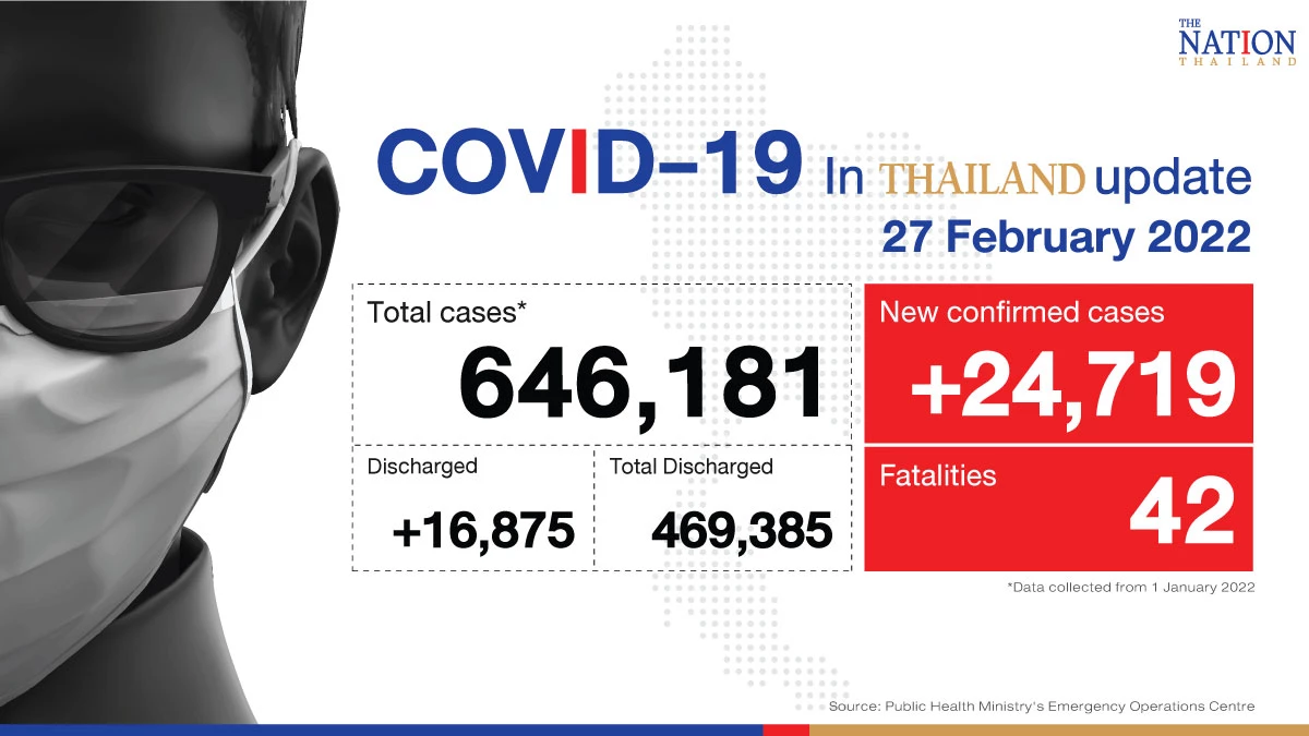 Thailand ranks 20th in the global list of most cases, which is topped by the US with 80.56 million, followed by India with 42.91 million, Brazil with 28.74 million, France with 22.64 million and the UK with 18.80 million.