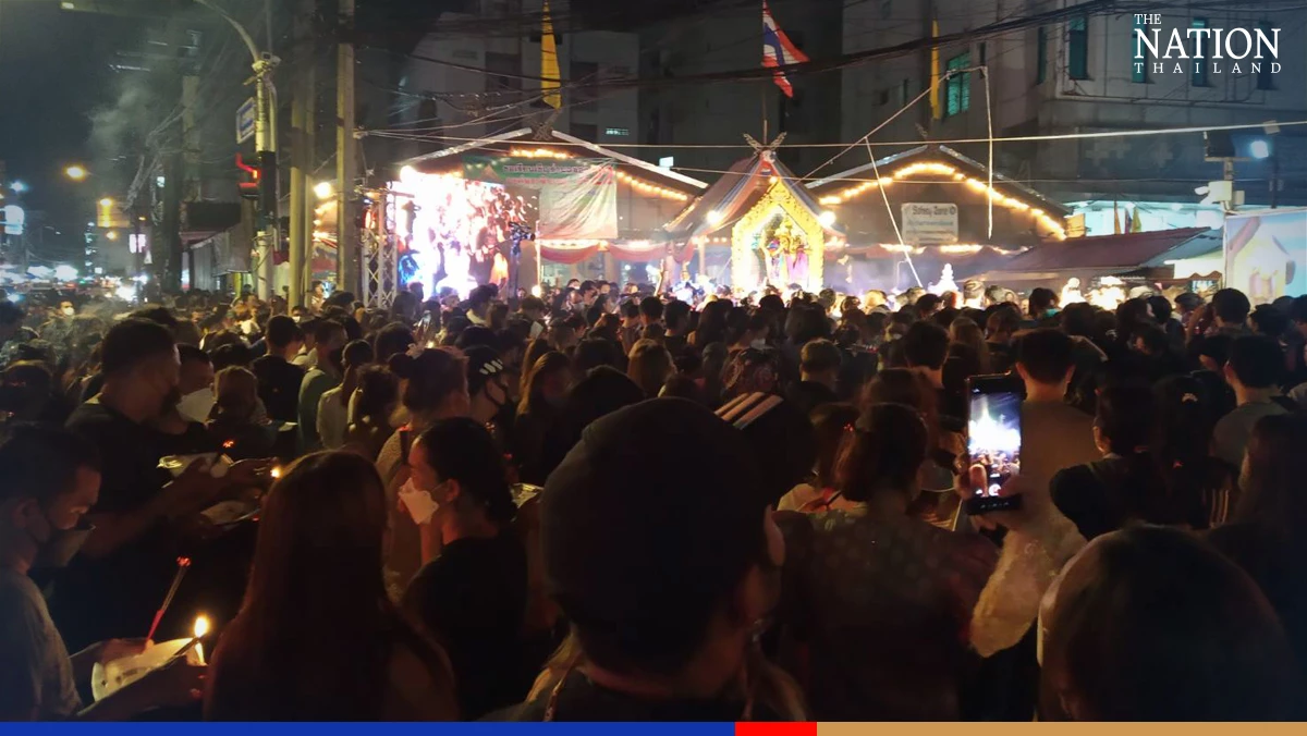 Pavements and roads near the shrine were crowded with an overwhelming number of devotees, causing traffic jams around Ratchada, Huai Kwang, Tiam Ruam Mitr and Phang Muang intersections.