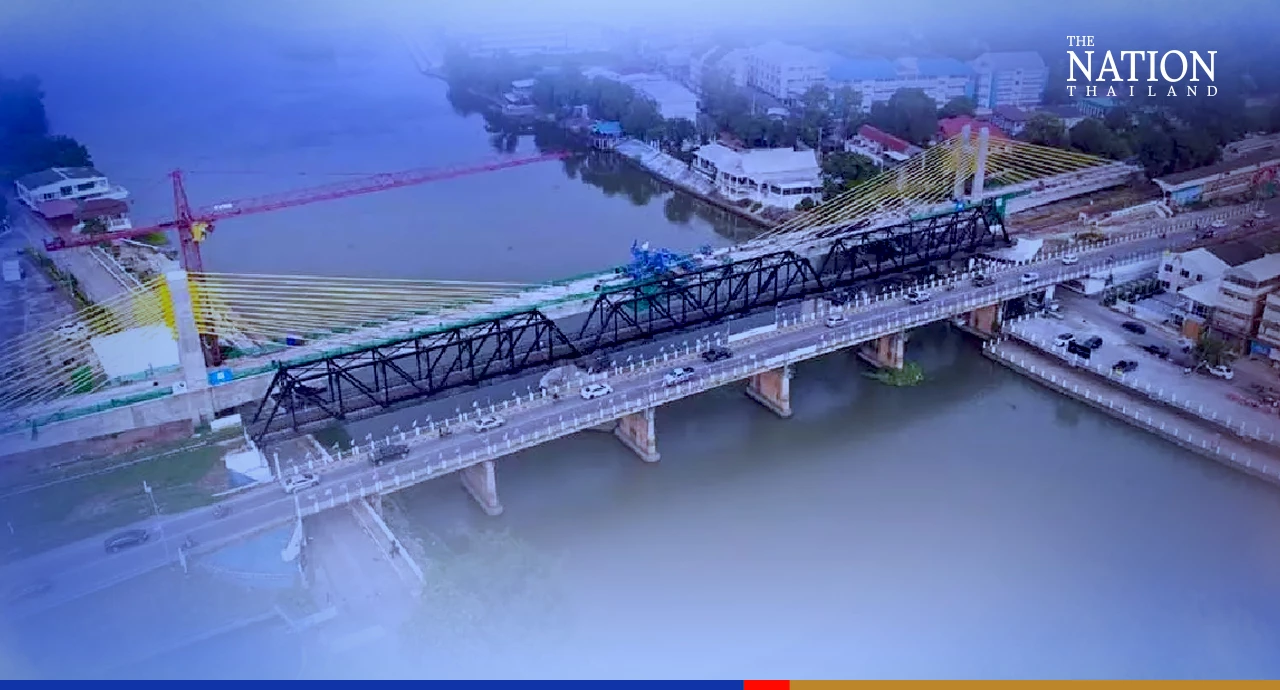 The 440-million-baht new double-track bridge runs alongside the Chulalongkorn Bridge, a single-track railway bridge built in 1901 to accommodate trains to the province.