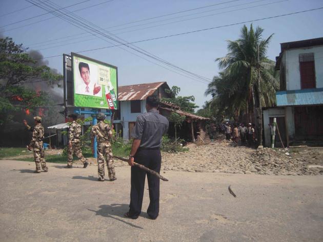 As the riots could not be controlled, the police forces took security measures in the town where Muslims are majority and Rakhine people are minority. Rohingya mobs were setting fire on the nearby villages of Rakhine ethnics, said a Buddhist monk who resides in Maungdaw Township.