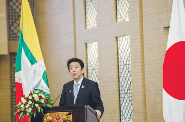 Underlining Japan’s willingness to make serious inroads in Myanmar, Abe brought more than 100 representatives from about 40 Japanese firms with him, all seeking new ties with Myanmar government and business leaders.