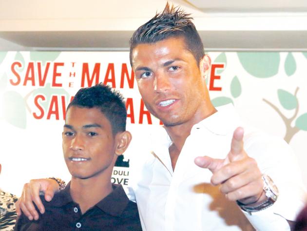 Ronaldo’s visit to Bali was also an opportunity for a reunion with Martunis, now 15 years old, who survived the Aceh tsunami having been dragged out to sea and then washed into a mangrove swamp. Martunis was rescued 19 days later and reunited with his father and grandfather. Wearing a Portuguese soccer jersey when the incident happened, he attracted the attention of European media, and Ronaldo was moved to visit him.