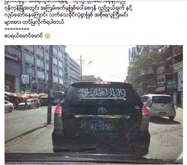 "The car owner said that his younger brother who made a pilgrimage recently had given him the sticker as a gift. Now the logo has been removed. He said he stuck the logo just for his religious belief and no other purposes. But the police is still continues its investigation," said police Lt Col Myint Htwe on January 15.